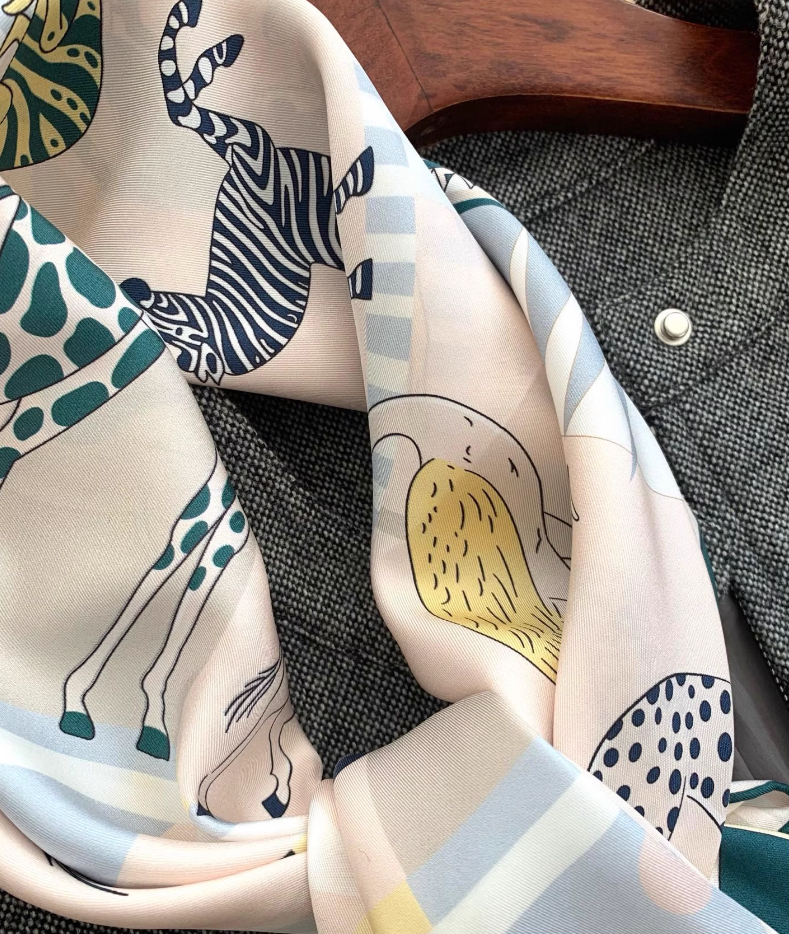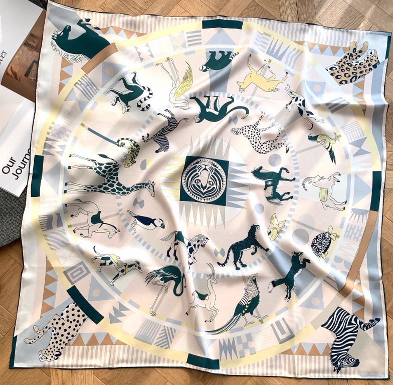 $ 42.24Pure 18 Momme Twill Silk Bandanna Scarf Wrap horse Print Square Shawl 35''new