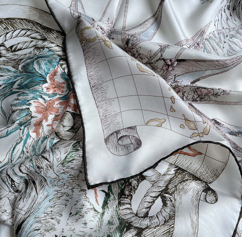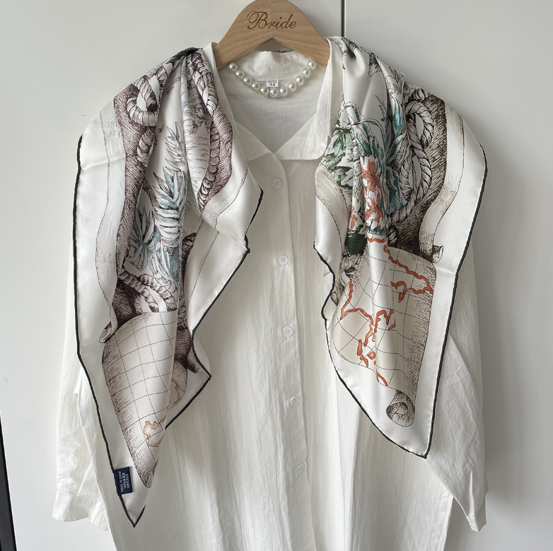 $ 31.68Pure 18 Momme Twill Silk Bandanna Scarf Wrap Garden Print Square Shawl 88x88cm