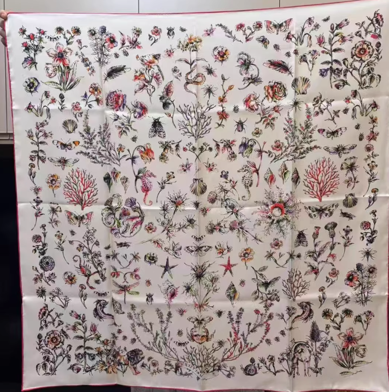 Pure 18 Momme Twill Silk Bandanna Scarf Wrap animal Print Square Shawl 90X90cm