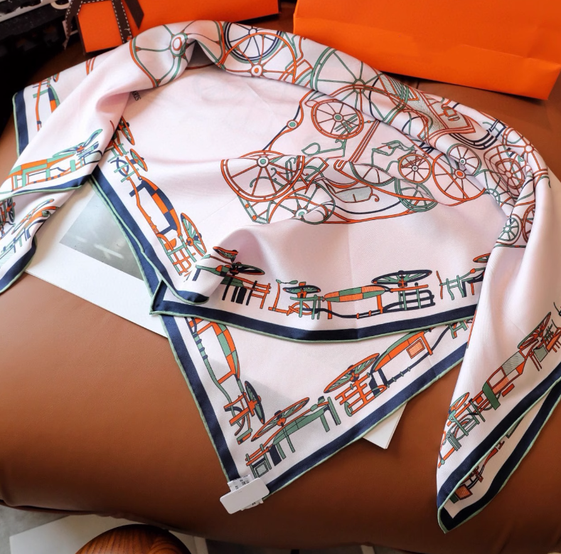 $ 42.24Pure 18 Momme Twill Silk Bandanna Scarf Wrap Saddle Print Square Shawl 90X90cm