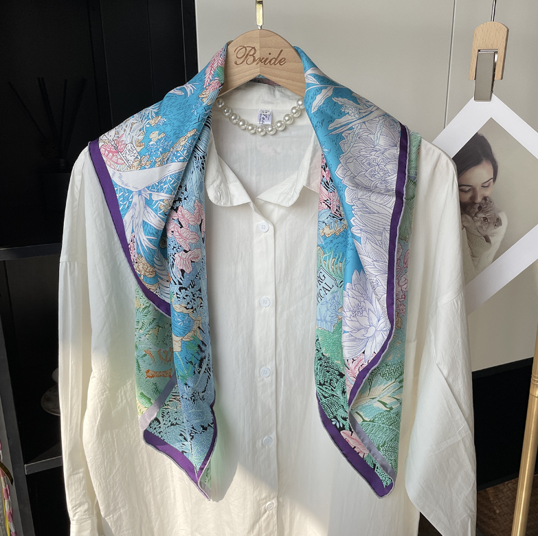$ 31.68Pure 18 Momme Twill Silk Bandanna Scarf Wrap Garden Print Square Shawl 88x88cm