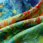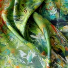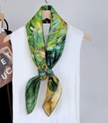 $ 26.4Pure 18 Momme Twill Silk Wrap 90X90cm Scarf Yellow field Print Shawl Double Face