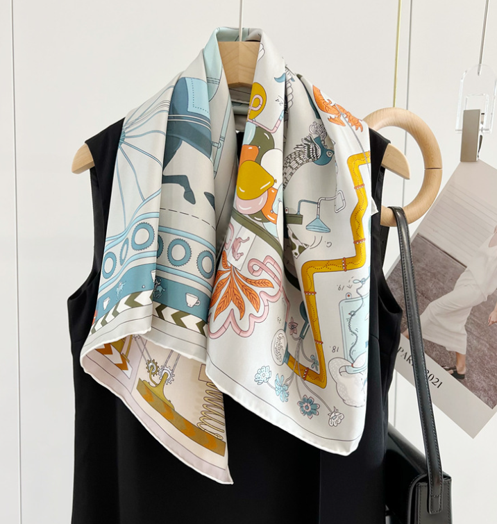 Pure 18 Momme Twill Silk Wrap Scarf Bandanna animal Print Square Shawl 35'’