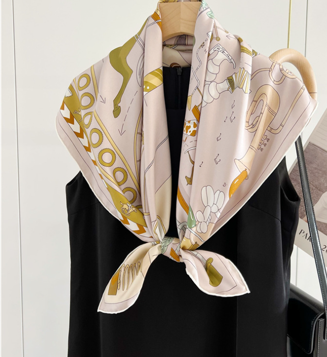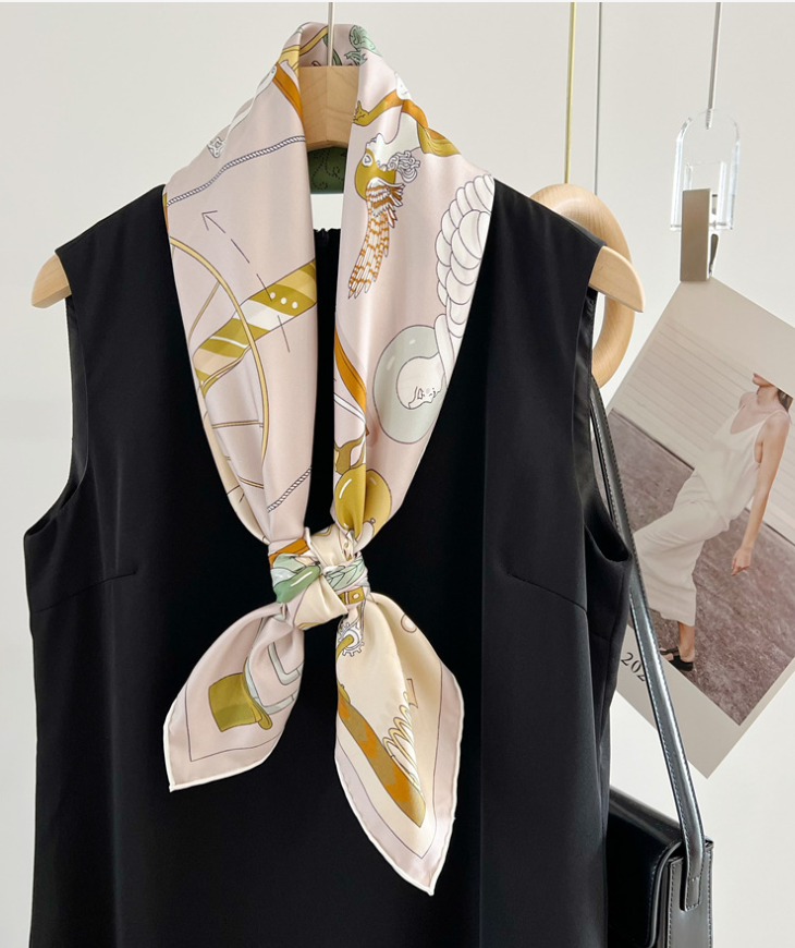 $ 26.4100% Silk Vintage Geometric Scarf for Women 27 Inch Square Bandana Wrap
