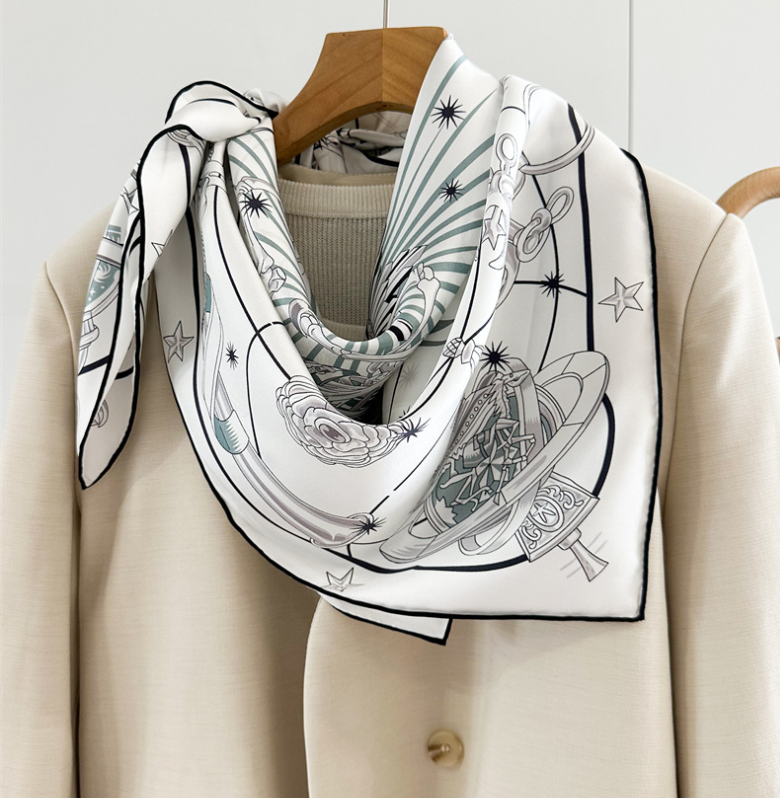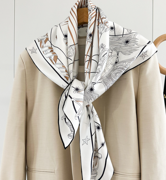 Pure 18 Momme Twill Silk Wrap Scarf Bandanna Saddle Print Square Shawl 35'’new