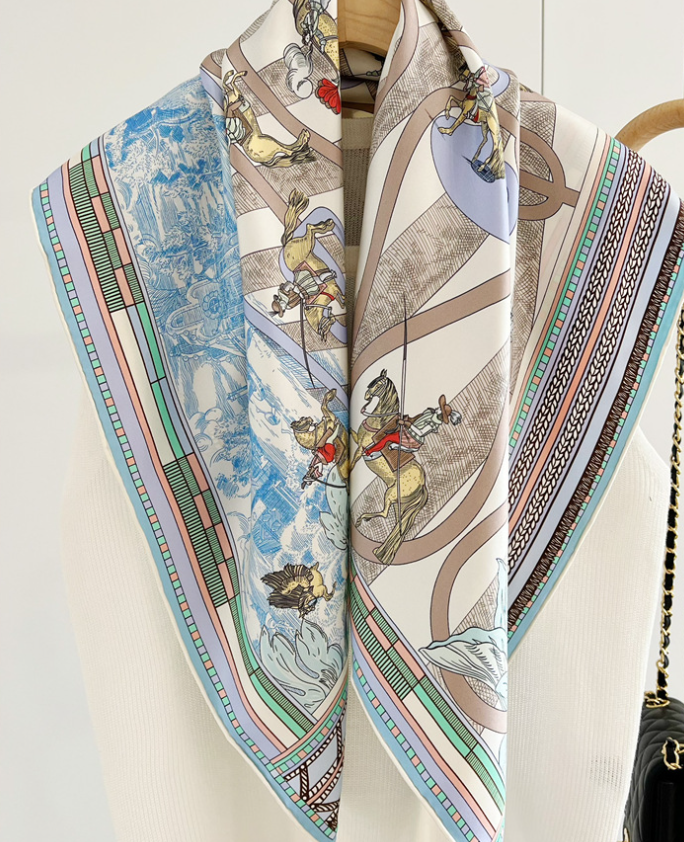 Pure 18 Momme Twill Silk Wrap Scarf Bandanna horse Print Square Shawl 35'’new
