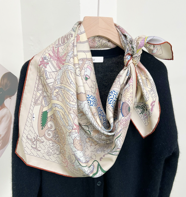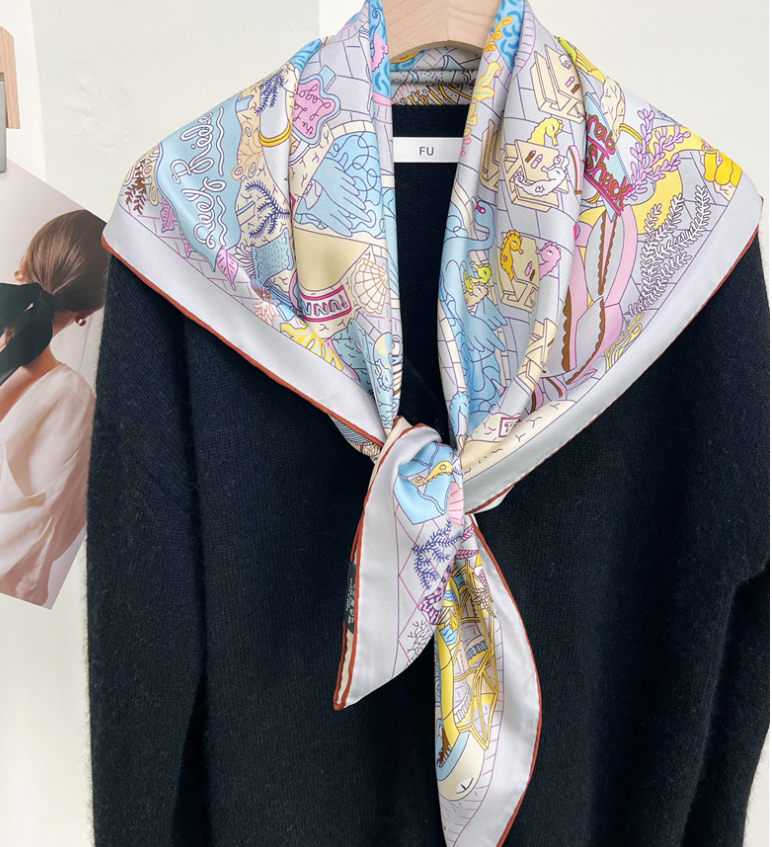 Pure 18 Momme Twill Silk Wrap Scarf Bandanna knight Print Square Shawl 35'’new