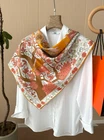 $ 29.0470% Cashmere 30% Silk 135X135cm Wrap Scarf pink forest Print Triangle Shawl new