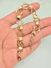 This 18k yellow gold bracelet features a shiny diamond shape design, making it a beautiful Valentine's gift. The bracelet is nickel-free, not plated, and marked as 18k gold. It weighs approximately 7.43g and has a length of 7.25”. The unique design is adjustable and comes in a gift box. Made in the United Arab Emirates, this elegant piece is a perfect choice for special occasions.