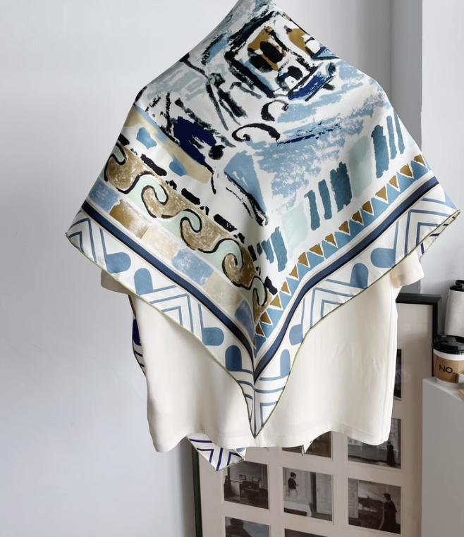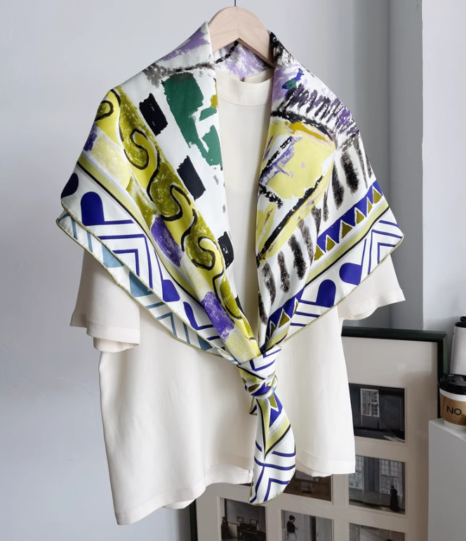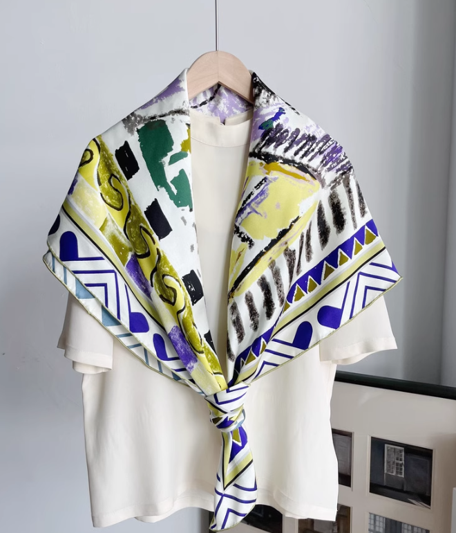 Pure 22 Momme Twill Silk Wrap Scarf Bandanna colour Print Square Shawl 105X105cm