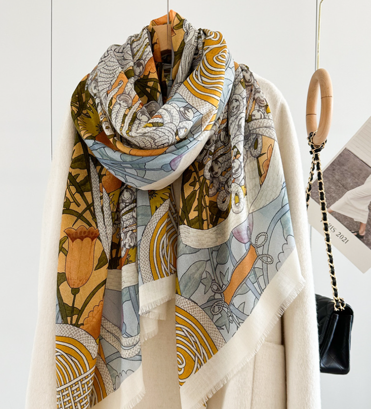 Unusually vibrant earthy paisley design in two separate colorways both of which are perfect for fall. Makes quite a statement, particularly over a jacket. Thick, high-end jacquard twill. Packaged well, arrived quickly, at a fantastic price. Very good seller.