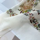 Pure Cashmere 200x100cm Yellow Floral Print Scarf Wrap for Women