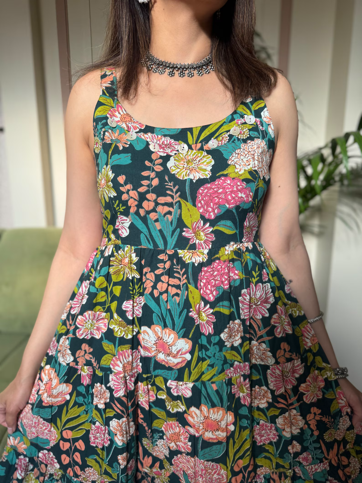 This unique handblock print is the highlight of this dress, along with the stylish collar ,belt and must have pockets ! Using the best quality cotton fabric along with the lovely combination of white and blue, this dress makes for a perfect wear at any outing, casual or dressy .Pair it with lacy sandals or comfy flats, the MIDI length is perfect to move around with ease. Block print cotton dress also features 3/4th sleeves. Model is wearing size M Size chart in PICS.Size chart attached in images mentions garment measurements in inches . if confused between sizes,we suggest to size up since cotton fabric doesnt stretch.