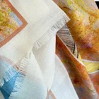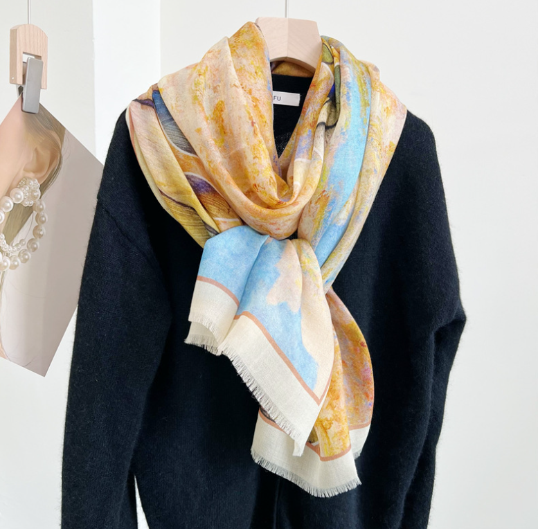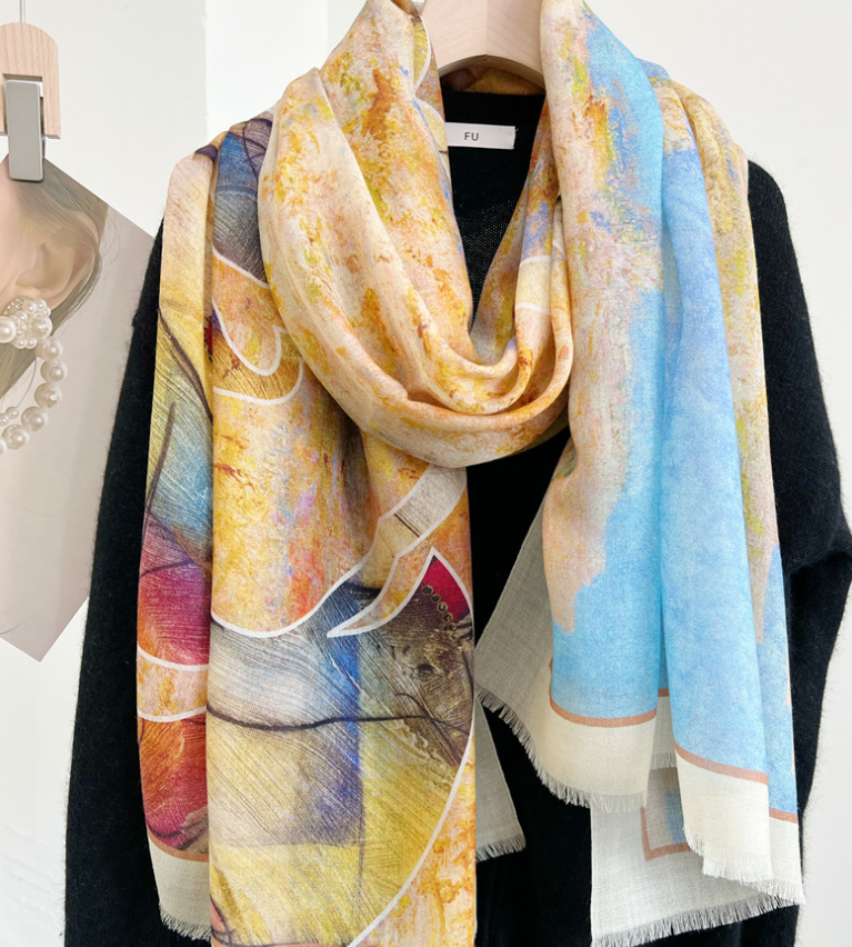 The scarf has a beautiful texture and great feel to it! I love the pattern and colors. It will be a very nice complement to several outfits. It arrived in a timely manner in perfect condition. For the quality I feel it is at a good price point! I would definitely buy from this seller again.