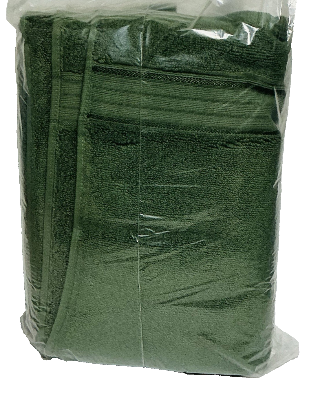 Purely Indulgent 100% Egyptian Cotton Bath Towel Set 30" x 58" - 2 Pack FREE SHIPPING The Purely Indulgent 100% Egyptian Cotton Bath Towel Set includes two luxurious bath towels, each measuring 30" x 58". Made from high-quality, soft 100% cotton with a GSM of 600, these towels offer a comfortable and absorbent experience. Featuring a solid green color and a modern design, these towels are perfect for adding a touch of luxury to your bathroom. The ribbed and textured design, along with the OEKO-TEX Standard 100 certification, ensures a premium and environmentally-friendly product for your home.