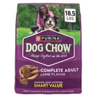 Purina Dog Chow Lamb Flavor Dry Dog Food Complete Adult, Discover a dog kibble that meets your dog's taste requirements while providing 100 percent complete and balanced nutrition with Purina Dog Chow Complete Adult Dry Dog Food With Lamb Flavor. An easily digestible dog food with a crunchy Purina dry dog food texture to help clean your dog's teeth, this formula has a lot to like. Each Purina Dog Chow Complete dog food bag is packed with enough high-quality protein to support your dog's strong muscles. That's not all: this hard dog food delivers 23 vitamins and minerals along with plenty of antioxidants to bolster your dog's immune system. A wholesome dry dog food with an irresistible lamb flavor. Purina Dog Chow Lamb Flavor Dry Dog Food Complete Adult, 18.5 lb Bag 100 percent complete and balanced dry dog food for adult dogs Purina Dog Chow Complete adult dry dog food kibble with high protein for strong muscles Features a tasty Purina dry dog food recipe packed with 23 vitamins and minerals along with antioxidants for immune health Crunchy Purina dog food dry kibble texture helps clean teeth Highly digestible hard dog food recipe proudly tested for quality and safety in Purina facilities