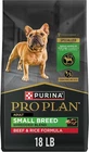 Purina Pro Plan Small Breed Dry Dog Food, Shredded Blend Beef and Rice Formula with Guaranteed Live Probiotics - 18 lb. Bag Item Description Dog kibble featuring real beef as the number 1 ingredient to meet the needs of highly active small dogs Pro Plan Small Breed dog food featuring bite-sized crunchy kibble and tender, shredded pieces for delicious taste and texture Dry dog food with calcium, phosphorus and other minerals to help maintain strong bones and teeth With live probiotics for dogs to promote gut microbiome resilience during naturally occurring stress Small dog food kibble provides 100 percent complete and balanced adult dog food for dogs under 20 pounds and contains no artificial colors or flavors › See more product details Product Dimensions:24 x 16 x 3.75 inches; 18 Pounds Manufacturer recommended age:1 month and up Item model number:00038100190697 Department:Pets Date First Available:February 1, 2021 Manufacturer:Nestle Purina Pet ASIN:B08VF9GT56 Best Sellers Rank:#15 in Dry Dog Food Customer Reviews:4.7 4.7 out of 5 stars Cater to your small breed dog's nutritional needs with meals made from high-quality ingredients carefully chosen for specific nutritional or functional purposes with Purina Pro Plan SPECIALIZED Small Breed Shredded Blend Beef and Rice Formula adult dry dog food. We craft this nutrient-dense adult dog food with real beef as the number 1 ingredient to meet the needs of highly active small dogs. Natural prebiotic fiber nourishes specific intestinal bacteria for dog digestive health. Vitamin A and omega-6 fatty acids nourish his skin and coat, while guaranteed live probiotics promote digestive and immune health. Plus, our shredded dog food is highly digestible for optimal nutrient delivery and contains no artificial colors or flavors. As part of the 100 percent complete and balanced dog food formula for adult dogs under 20 pounds, this high protein dry dog food contains calcium, phosphorus and other minerals to help maintain strong bones and teeth. Dog kibble featuring real beef as the number 1 ingredient to meet the needs of highly active small dogs Pro Plan Small Breed dog food featuring bite-sized crunchy kibble and tender, shredded pieces for delicious taste and texture Dry dog food with calcium, phosphorus and other minerals to help maintain strong bones and teeth With live probiotics for dogs to promote gut microbiome resilience during naturally occurring stress Small dog food kibble provides 100 percent complete and balanced adult dog food for dogs under 20 pounds and contains no artificial colors or flavors Payment We accept payment only through PAYPAL Shipping We ship products worldwide through standard express courier service, it will reach within 7 to 10 days to abroad buyers, we ship the product after recieved clear payment and give full information about shipment to the buyer Return We accept product return within 7 to 21 days from delivery date but product should be in original position and not in damaged condition,the return shipping charges will be buyer responsibility