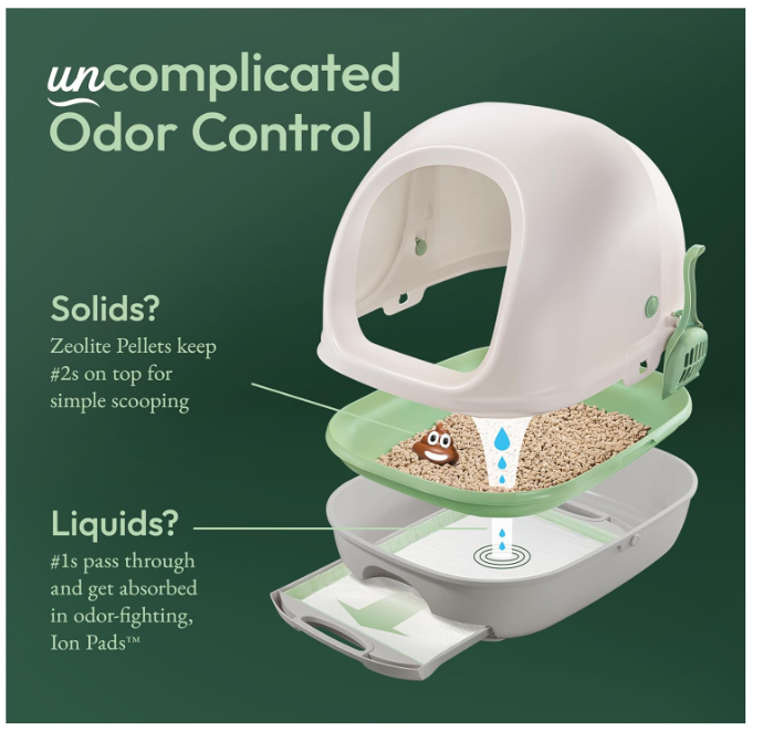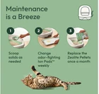 Complete Breeze Cat Litter System – Hassle-Free Odor Control All-in-One System: This covered litter box kit combines a hooded litter box, disposable Ion litter pads, and Zeolite litter pellets in one convenient package, delivering superior odor control and easy maintenance. Breeze Litter Box Included: The system comes with a hooded litter box with scoop, one pack of litter box pads, and a bag of litter pellets—enough to last your first month when used as directed. Disposable Litter Pads: The included pads lock in moisture and odor for up to 7 days for one cat, making cleanup simple and hygienic. Dust-Free Cat Pellets: Breeze cat litter pellets are 99.9% dust-free, reducing tracking and keeping floors, paws, and surrounding areas clean. Non-Clumping Pellets: Designed to keep solid waste on top for quick and easy removal, these pellets provide a clean and low-maintenance litter solution that lasts up to a month.
