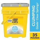 Combine the power of two trusted names in odor control in your home with Purina Tidy Cats Clumping Cat Litter, Glade Clear Springs Deodorizing, 35 lb. Pail. This clumping multi cat litter neutralizes ammonia, urine and fecal odors, keeping each litter box smelling clean and pleasant for 10 days when used as directed. Backed by the power of Glade, the clay cat litter defends against strong scents, leaving a fresh fragrance behind. Our low-dust clay clumping cat litter solution forms strong, tight clumps, making litter box maintenance a simple task. Formulated for multiple cats, this scented clumping cat litter stands up to regular use by all your feline family members, and the moisture-locking technology keeps them dry and comfortable. Make it simple to check kitty litter box cleaning off your list with the powerful odor control and performance you expect found in Purina Tidy Cats With Glade Clear Springs clumping clay cat litter. Please note that this cat litter does not come with any accessories. Purina Tidy Cats Clumping Cat Litter, Glade Clear Springs Deodorizing, Low Dust, 35 lb. Pail Clumping kitty litter formulated for multiple-cat households forms strong, tight clumps for easy cleanup and locks in moisture to keep cats dry and comfortable Backed by the 70 years of expertise of Tidy Cats, the brand most often recommended and personally used by veterinarians, this low dust clay litter formula enables a clean pour No accessories included Powerful Glade Clear Springs clumping scented cat litter from two trusted brands adds a pleasant fragrance to your litter box area