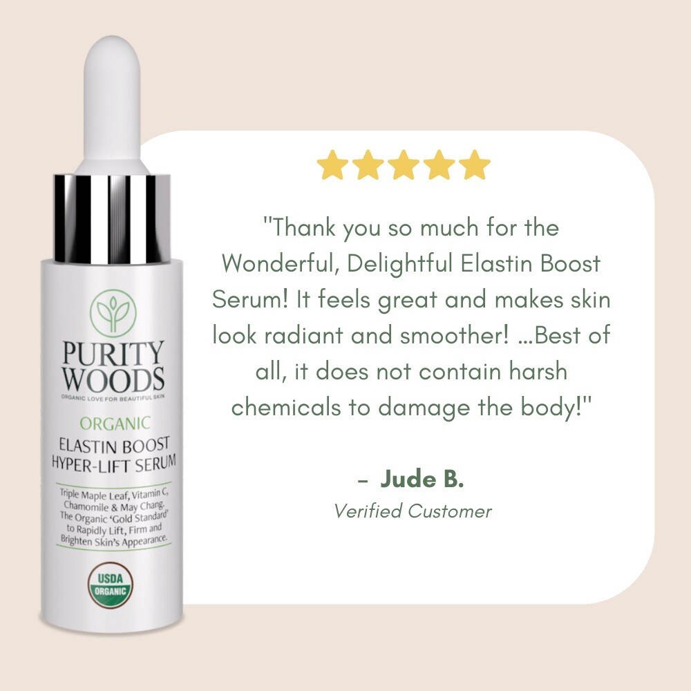 Unlock Your Skin’s Full Potential with Purity Woods’ Organic Elastin Boost Hyper-Lift Serum. Combat the telltale signs of aging and enjoy a lifted, smoothed, brightened, and firm appearance with our revolutionary Hyper-Lift Serum. Our USDA Certified Organic product contains an exclusive blend of plant-based ingredients that revitalize your skin naturally, eliminating reliance on harsher chemicals found in non-certified, greenwashed products. Our secret? The revolutionary elastin-boosting, anti-wrinkle, anti-sag power of Organic Canadian Maple Leaf Extract that work to prevent elastin breakdown in the skin. With three different types of organic maple leaf extracts, our Age-Defying Serum serves as a guardian for your skin’s precious elastin as you age, providing unbeatable results that counteract the look of even the deepest of wrinkles and will leave you feeling more youthful and confident. With visible results in just a few days, you’ll wonder why you didn’t discover this serum sooner. Non-greasy, non-comedogenic, and designed with sensitive skin in mind, our serum will restore your skin’s youth like nothing else possibly can. Start your journey toward more youthful skin today with Purity Woods. Shipping: We offer FREE shipping on all orders! We ship within 3 business days of payment, usually sooner. We use a selection of shipping services such as UPS, FedEx, USPS etc. We only ship to the lower 48 states, no APO/FPO addresses or PO Boxes allowed. Return: You can return a product for up to 30 days from the date you purchased it. Any product you return must be in the same condition you received it and in the original packaging. Please keep the receipt. Contact Us: You can contact us by leaving us an txt message on Ebay We will respond to each txt message within 24 hours every working days(within 36 hours on weekend). We will provide you the best service, sincerely appreciated you would contact us to get a better solutions . thank you so much to consider time difference, maybe we couldn't not reply to you in a timel manne. Feedback: Customer satisfaction is very important to us. If you have any problem with your order, please contact us and we will do our best to make you satisfied. Thank you for shopping at our store.