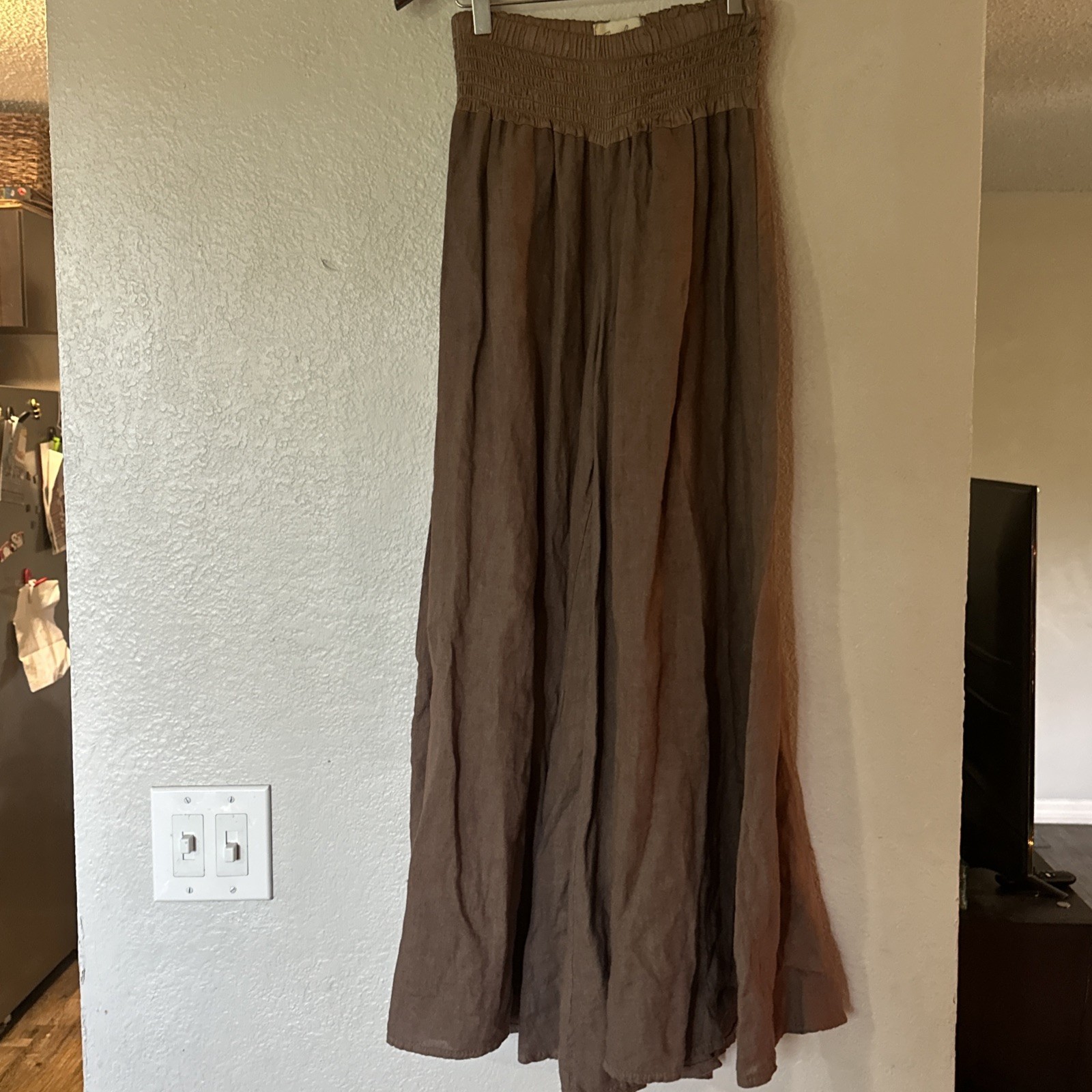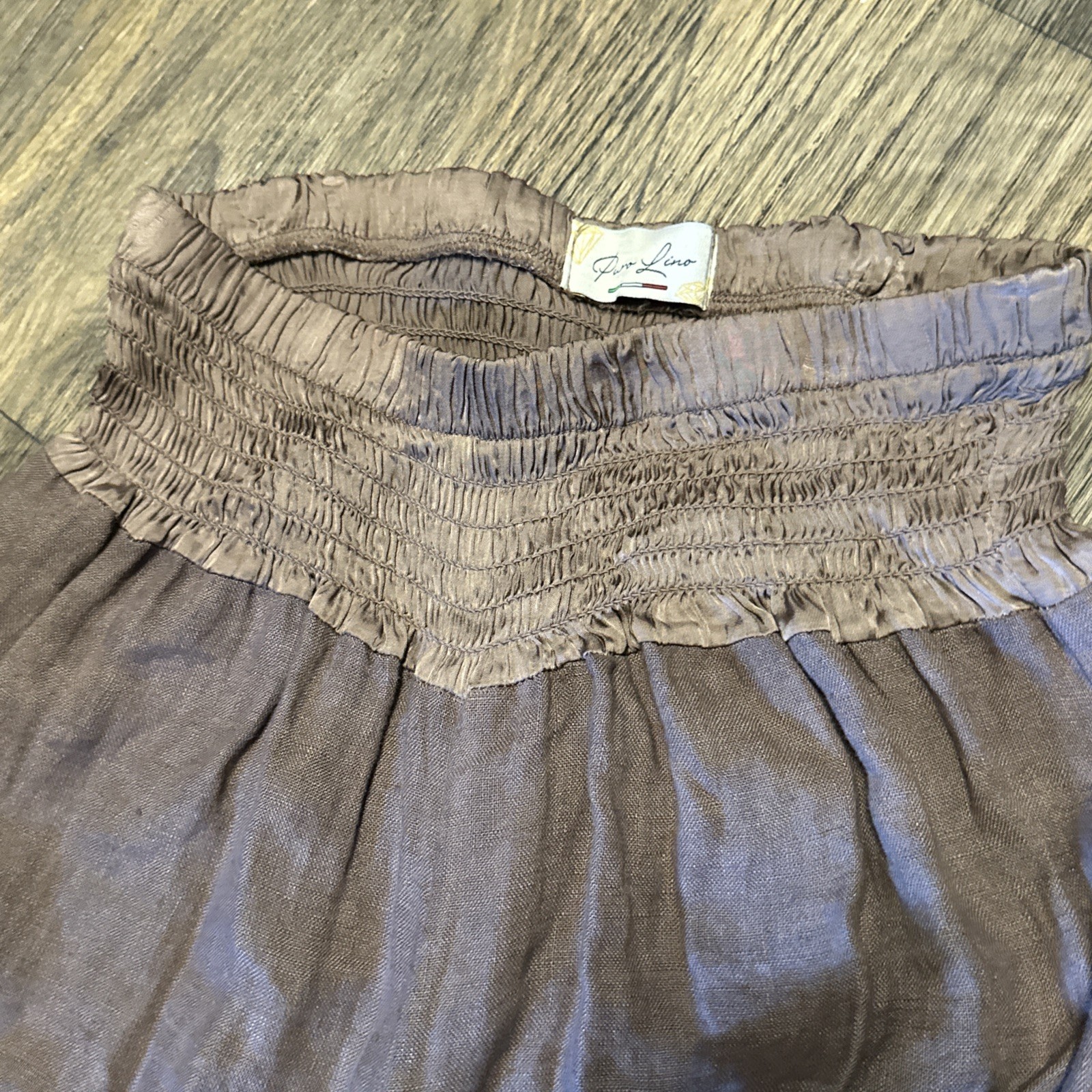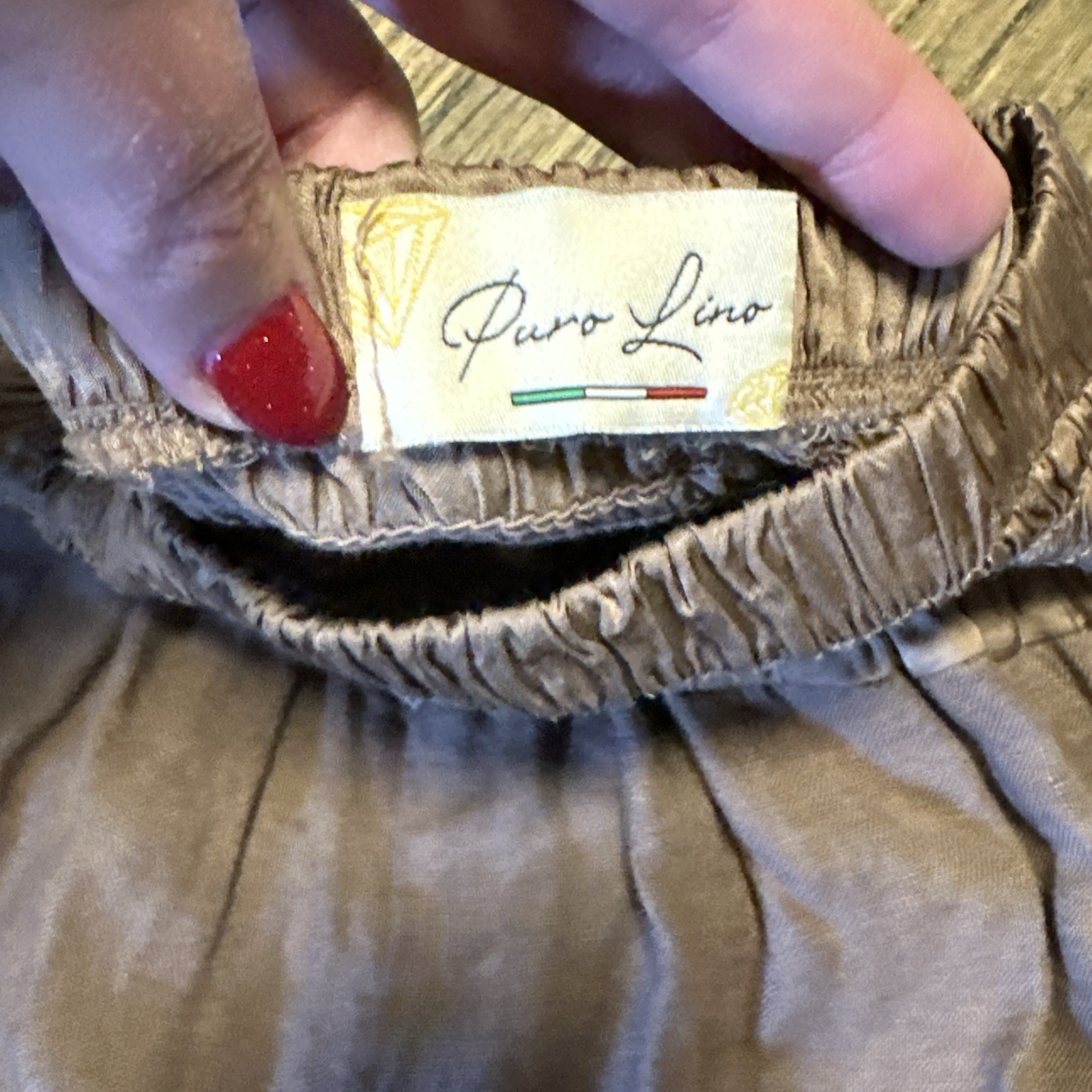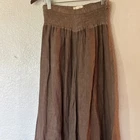 The Puro Lino Made In Italy Linen Wide Leg Pants in Brown are stylish women's pants designed with a wide-leg silhouette. Made from high-quality linen, these pants offer comfort and breathability. The brown color adds a touch of elegance, making these pants perfect for a casual day out or dressed up with a top for a more formal occasion. With a size and measurement tailored to fit the wearer comfortably, these pants are a versatile and chic addition to any wardrobe.