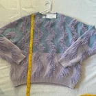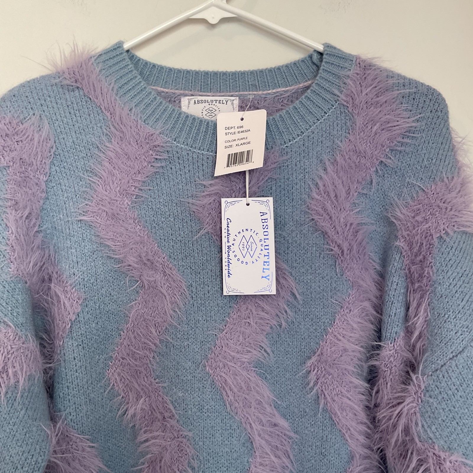 This XL Purple Colorblock Sweater is a stylish and cozy choice for the winter season. Made from a soft and stretchy blend of polyester, nylon, and acrylic, it features a geometric pattern in a vibrant purple color. The sweater has long sleeves, a round neck, and is designed as a pullover style for easy wear. Perfect for casual occasions, this sweater also offers breathability and is ideal for adding a feminine touch to your winter wardrobe. Measurements Pit to pit : 21” (42) Sleeves : 19” Length : 22” Nylon blend Condition : New with tags.