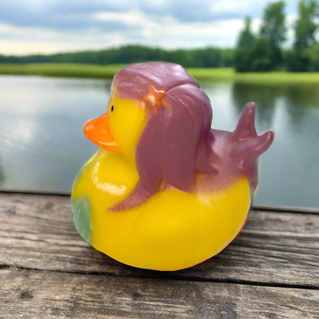 Mermaid Purple Rubber Duck loves to swim in the ocean. Rubber Duck approximately 2" tall. Not guaranteed to float upright. Comes with a random WISE QUACK note of inspiration and humor!