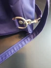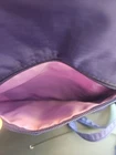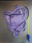 The Totes Purple Waterproof Mini Backpack is a stylish and functional accessory for women on the go. With a solid purple exterior and zip closure, this backpack features a removable strap for added versatility. The waterproof nylon exterior and zippered pockets make it perfect for keeping your belongings safe and dry during outdoor adventures. The mini size and zippered pockets provide convenient storage for all your essentials, while the light purple lining adds a touch of femininity. Perfect for everyday use or special occasions, this backpack from Totes is a must-have addition to any wardrobe. The interior lining has damaged to the color. the pictures and the price reflect this.