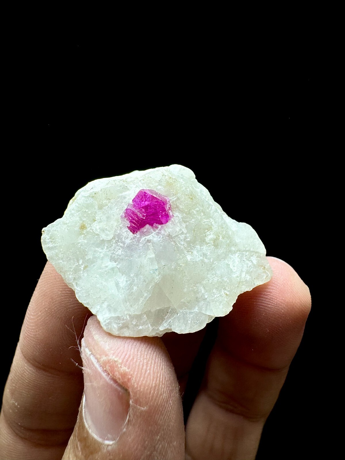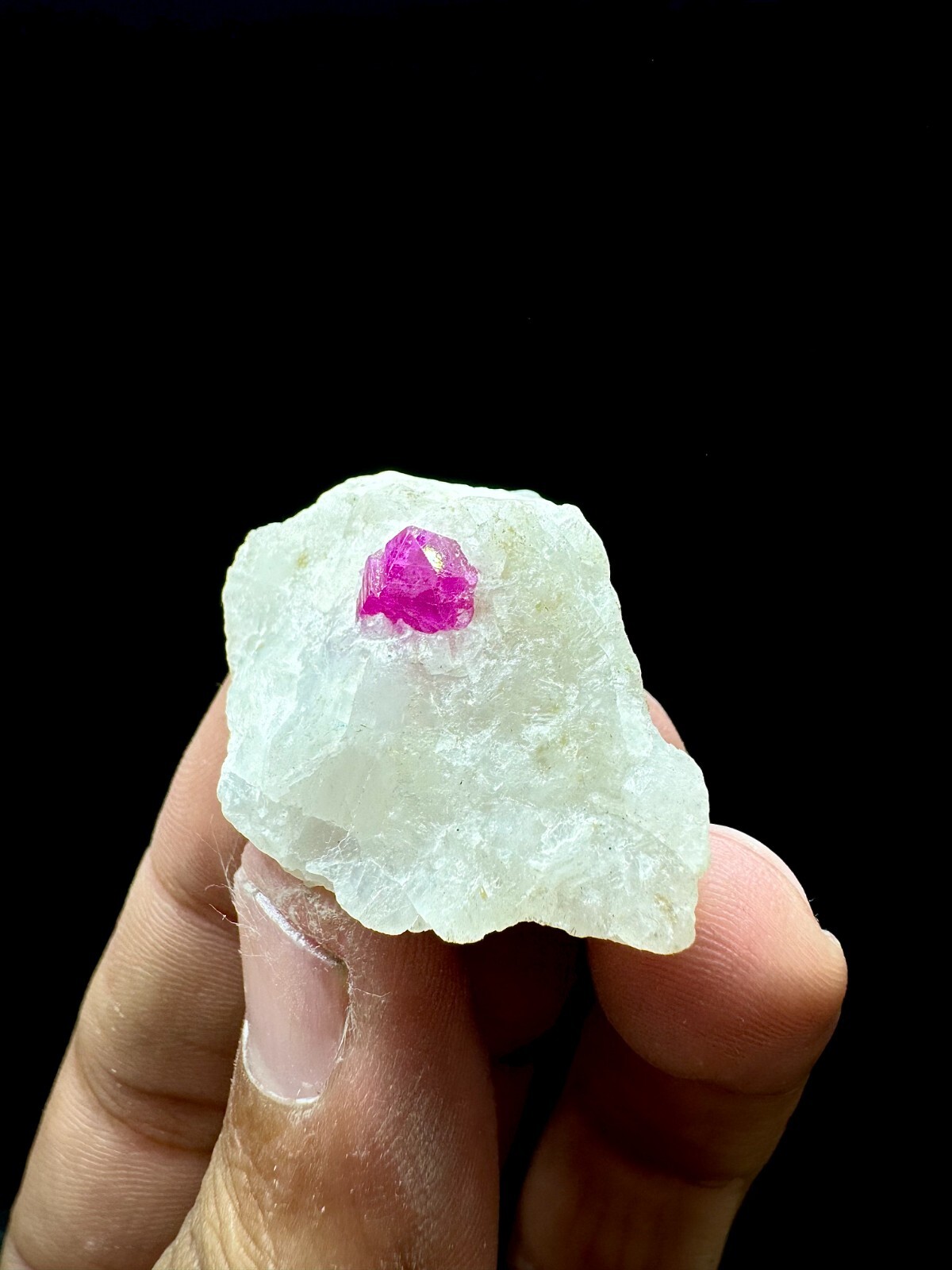 Pyramid Shape Well Terminated Ruby Specimen from Jagdalek Afghanistan - 51.55 Ct Specimen contains terminated and undamaged ruby crystal. Ruby crystal has perfect Pigeon Blood Red color. It has excellent luster. Weight : 51.55ct Size : 35*25*24 mm Origin : Jagdalek Afghanistan Treatment : Natural Express Shipping