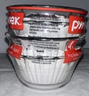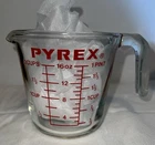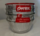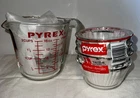 The custard cups are new in packaging but the measuring cup is Pre-Owned. Measuring cup has a tiny chip on top and bottom. Thanks for Looking.
