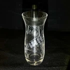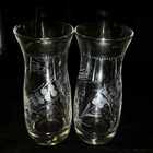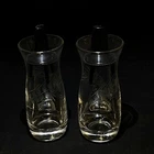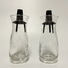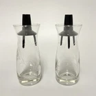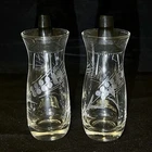 Set of 2 Pyrex Etched Glass Oil & Vinegar Salad Dressing Cruets Black Plastic Lid Vintage Measures about 5 inches tall x 1 3/4 inches wide Very good to excellent condition with no cracks, chips, or repairs