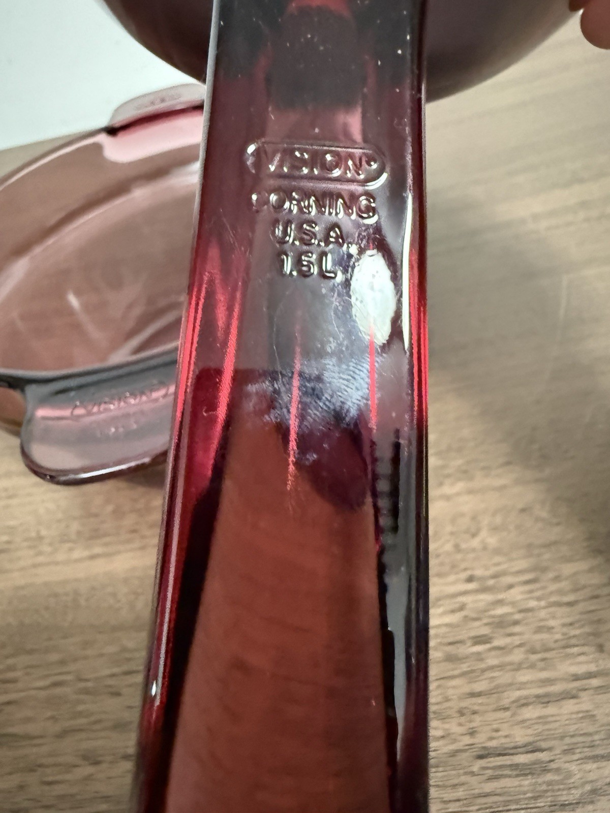 2 Pyrex Vision Corning Ware Cranberry Glass 1.5 L Sauce Pan With Lid. Condition is Used. Shipped with FedEx Ground Economy.