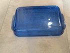 This vintage Pyrex cobalt blue rectangular baker is a must-have for any collector! Made in the USA, this piece is perfect for those who appreciate the durability and style of Pyrex products. The rich blue color adds a touch of elegance to any kitchen, while the rectangular design makes it perfect for baking and serving a variety of dishes. Whether you're looking for a replacement piece or simply adding to your collection, this Pyrex baker is sure to impress. Dimensions 11" x 7.5"
