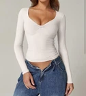 Elevate your basic wardrobe with this stylish and comfortable QINSEN women's T-shirt. Featuring a V-neckline and long sleeves, this slim-fit top is made of a soft and stretchy blend of 80% nylon and 20% spandex. The twist front design adds a touch of elegance, while the snap closure ensures a secure fit. Perfect for any season, this beige-colored T-shirt is double-lined for added comfort and warmth. It's a great addition to your casual or formal wardrobe, and can be paired with jeans, skirts, or shorts. Get your hands on this high-quality SZ brand T-shirt today!