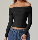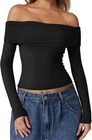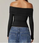 Elevate your wardrobe with this chic QINSEN off-the-shoulder top. The double-lined long sleeves and snap closure add a touch of elegance to this slim-fit t-shirt. Perfect for any occasion, whether it's casual or business, this black top is made of 75% nylon and 25% spandex, ensuring comfort and style. The neckline is designed to flatter the shoulders, while the slim fit hugs the body in all the right places. This top is suitable for all seasons, including winter, summer, fall, and spring. Add this versatile piece to your collection and elevate your style today.
