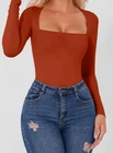 Elevate your wardrobe with this chic and versatile QINSEN women's bodysuit. Perfect for any occasion, this piece features a sexy square neckline and long fitted sleeves. Made from a comfortable and stretchy blend of nylon and elastane, this bodysuit comes in a vibrant picante color and is accented with a snap closer for added flair. Whether you're dressing up for a party or keeping it casual, this double lined bodysuit provides a flattering fit for any body type. With its solid pattern and classic style, this blouse is a must-have for any fashion-forward woman. Get ready to turn heads and make a statement with this QINSEN bodysuit.