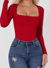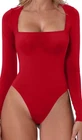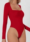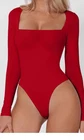 Elevate your wardrobe with this stunning red bodysuit from QINSEN. Designed with a square neckline and long sleeves, this classic and fitted piece is made from a combination of nylon and elastane, ensuring comfort and stretch. It features a snap closer for added sexiness and is perfect for any occasion. This basic and solid colored bodysuit is lined for added comfort and is a size S. It is a must-have for any fashion-forward woman who wants to look and feel confident.