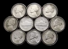 100217107 QJ02107 VINTAGE **10 USA WAR TIME SILVER NICKELS** REAL US COINS WESTERN BUCKLE REALLY GREAT BUCKLE ! Scroll Down For More Pictures (ad created with AdGen 16.9 - posted by: GW) GENDER: MALE ERA: 1970s MAKER: UNKNOWN FINISH: SILVERTONE METAL / REAL USA COINS DETAILS: * GREAT VINTAGE BUCKLE !! * REAL USA COINS: 10 1940S WAR TIME REAL SILVER NICKELS (DATED FROM 1942 TO 1945)) * COINS ARE GLUED INTO PLACE * IT IS UNKNOWN IF COINS CAN BE EASILY REMOVED. * PLEASE REFER TO PICTURES FOR MORE DETAILS & CONDITION COMMENTS: * GUARANTEED ORIGINAL ITEM !! * GREAT VINTAGE PATINA!! MEASUREMENTS: 3.75" (9.5cm) Width 2.55" (6.5cm) Height 1.75" (4.4cm) Max. Belt Width Every item carefully hand measured! A GREAT ONE TO ADD TO YOUR COLLECTION !! **** IMPORTANT **** WE SELL VINTAGE ITEMS THAT MAY DETERIORATE OVER TIME. WE CAREFULLY INSPECT EACH ITEM AND TRY TO NOTE ANY VISIBLE FLAWS, BUT ARE NOT LIABLE FOR DAMAGE THAT OCCURS AFTER PURCHASE. ALL ITEMS ARE SOLD "AS IS" ONLY WITH NO WARRANTY OF ANY KIND EXPRESSED OR IMPLIED. Promotional Payment Information Payment Terms FULL PAYMENT REQUIRED WITHIN 5 DAYS OF PURCHASE! Payment Options Please see this site's payments section for available options. Shipping Information Shipping Rates U.S.A. CANADA OTHERS 1 Buckle $6.00 $15.00 $18.00 2 Buckles $7.00 $16.00 $19.00 3 Buckles $8.00 $17.00 $20.00 4 Buckles $9.00 $18.00 $21.00 <--BEST DEAL!!! FREE U.S.A. SHIPPING ON 10 ITEMS OR $200 TOTAL! FREE INTERNATIONAL SHIPPING ON 20 ITEMS OR $400 TOTAL! All items are shipped with a tracking # or delivery confirmation # in order to comply with buyer/seller protection requirements. International Buyers *Import duties, taxes and charges are not included in the item price or shipping charges. These charges are the buyer's responsibility. *Please check with your country's customs office to determine what these additional costs will be prior to bidding/buying. *These charges are normally collected by the delivering freight (shipping) company or when you pick the item up. DO NOT confuse them for additional shipping charges. *We do not declare merchandise values below actual selling price. We also do not mark items as "gifts". U.S. and International government regulations prohibit such behavior. *Some countries customs clearance can delay arrival of your shipment up to 60 days! BEFORE BIDDING ON OR BUYING OUR ITEMS YOU MUST AGREE TO THE FOLLOWING TERMS: Buyer agrees to pay for item within 5 days of purchase. No returns accepted without prior authorization from seller. Shipping charges will not be refunded or reimbursed on returned items. ***** All items sold "AS IS" only ******