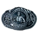 This belt buckle is a commemorative piece featuring a classic design with a "Coal Miner" theme. Made of pewter-tone metal, it measures 4.05" in width and 2.70" in height, fitting belts up to 1.65" in width. The buckle is suitable for unisex adults and has a solid pattern, making it a really nice accessory for mining or energy enthusiasts. Unique ID: QK15115.