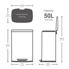 Well Designed and Engineered 50L Stainless Steel Step-On Trashcan Suitable for any area of your home, this well-designed and engineered 50L Stainless Steel Step-On Trashcan is versatile and fits seamlessly in various spaces. The Rectangle Shape design allows it to blend in perfectly in areas such as kitchens, offices, living rooms, restaurant bathrooms, bedrooms, dorm rooms, or any open space . The removable bucket liner feature allows you to keep the bag hidden from public view, maintaining a neat and clean appearance. 50L capacity with easy step-on mechanism Stainless steel construction with soft close lid closer Removable bucket liner keeps the bag hidden from sight Keeps trash orderly for a tidy space Versatile slim design suitable for many areas Make trash disposal easy and stylish with this Stainless Steel Step-On Trashcan. The removable bucket liner ensures that the bag remains hidden, contributing to a neat and organized space. The easy step-on mechanism and soft close lid closer add convenience to your waste management. OUR PROMISE: 100% Satisfaction Backed by Dedicated Customer Support Team, Worry Free Defective Replacement at No Additional Charges to You. OUR QUALITY: High-Quality Stainless Steel and ABS Construted. Our Trashcan is Build to Last! Fingerprint and Smudge Resistant Coating Make Cleaning a Breeze. OUR CRAFTSMANSHIP: Large, Wide Opening Area. Provides Easy Access for Daily Chore Work. OUR DESIGN: Modern, Stylish, Elegant, Completes and Show Case Your Home With This Missing Piece OUR VISION: Multi-Purpose, Suitable for Kitchen, Bath, School, Hotel, Airport, Construction Site, Office Space, Indoor/Outdoor, Boat, RV, and More..