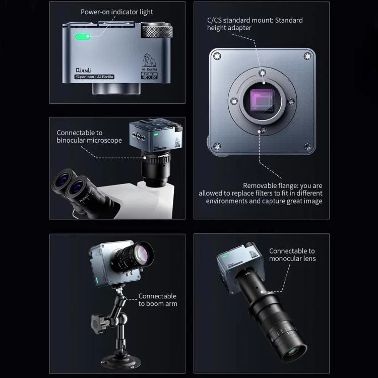 1. 6.5X–58X Stepless Zoom for Precision Work: Continuously adjustable zoom range from 6.5X to 58X enables detailed observation of PCB components, IC chips, and micro solder joints. 2. Wide Field of View & Long Working Distance: Offers a spacious working area and broad visual field, making it ideal for soldering, reballing and cleaning operations without obstruction. 3. Optical Lens System: Equipped with premium optics that deliver crystal-clear images with minimal distortion and accurate color reproduction. 4. 95% high color rendering lighting module. 5. Multi-Functional Interface with Standard Thread Mounts: Equipped with both 1/4 and 3/8 standard thread mounts, the microscope supports a wide range of cameras and auxiliary devices for photography and video output. 6. CMOS: Sony 1/1.8inch Specification: Package Weight One Package Weight 1.00kgs / 2.21lb One Package Size 19cm * 2cm * 10cm / 7.48inch * 0.79inch * 3.94inch Qty per Carton 12 Carton Weight 13.00kgs / 28.66lb Carton Size 40cm * 42cm * 32cm / 15.75inch * 16.54inch * 12.6inch Loading Container 20GP: 496 cartons * 12 pcs = 5952 pcs 40HQ: 1151 cartons * 12 pcs = 13812 pcs