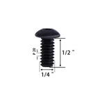 (Qty 50) 1/4-20 X 1/2" Button Head Cap Screw Black Oxide Coarse Thread Socket Description Feature : 1. The button head socket screws are 100% alloy steel grade 10.9 2. The low profile of the socket button head makes a very clean looking, and offers a much larger contact surface. 3.Button Head Socket Screws are great to have around for use in wood and wet environments. SPecifition Material :Alloy Steel Thread Diameter : 1/4" Head Diameter : 0.437" Head Height : 0.132" Screw Length : 1/2 Pitch Size : 20 Threads per Inch Allen Hex Drive : 0.156" (5/32") Material : Alloy Steel Grade 10.9 Package Included : 50 x Button Head Socket Bolts/Screws. 1xL-shaped wrench Payment Shipping Returns Contact Us ★We accept Paypal payment only. ★We will leave a positive feedback immediately after payment is received. We appreciate a positive feedback as much as you do. If for some reason there is any issue with the purchase, please contact us prior to leaving feedback, we will be glad to work together and provide a satisfying solution. Package handling only takes 1 business day at our US STOCK, so please make sure entering correct payment and shipping information before checking out.different Font Size, Font Color, Style and even graphics and icons are also accepted. ] 1.A full refund will be given if items are returned in thier original condition. 2 Merchandise which is damaged or missing component is not refundable 3.Buyer are responsible for return shipping with proper packaging 4.Before returning items, please make sure you get to our return address, Please inform us the tracking number after you return the items 5. Once receiving items, we will refund you inmmediately [ Contact Us: This is the contents of your Contact Us. You can add a banner for this Contact Us as header and add text descriptions here. The text descriptions can be different Font Size, Font Color, Style and even graphics and icons are also accepted. ]