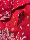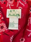 This Quacker Factory Red Bandana Paisley Beaded Western Jacket in size S is a stylish and versatile piece for any occasion. Made from cotton with a paisley pattern, this short-length jacket features long sleeves, a button closure, and embellishments such as beading and embroidery. The red color and Western theme make it a perfect addition to your wardrobe, suitable for travel, parties, or casual wear. With a regular fit and pockets for added convenience, this jacket is both comfortable and fashionable for all seasons. Top to bottom 26” Pit to pit 21” Shoulder to Shoulder 17” Sleeve length 23”
