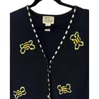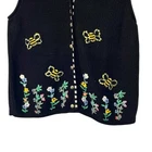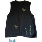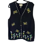 22" armpit to armpit 17" shoulder to shoulder 27" shoulder to hem 16" armpit to hem excellent condition, no flaws Quacker Factory sleeveless sweater vest ** stunning black sequin embroidered ** V-neckline ** sleeveless design ** tight-knit ramie and cotton fabric ** front buttons ** features a colorful floral pattern with butterflies and flowers * ** all items stored in a smoke-free & pet free home