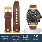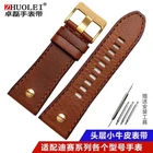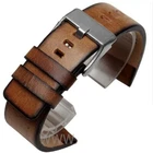 Description: Band Width: 22mm, 24mm, 26mm, 28mm Material: Genuine Leather Color: Brown Buckle: Stainless Steel Clasp Length: About 120+80mm Thickness:3.5-4.0mm Type: Fashion Package: 1 x watch strap 2 x loading strap tools 2 x hand ears (pins)