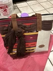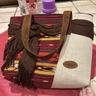 The Quatemala Bag is a large summer tote/bag that is very decorated, making it a stylish accessory for women. The multicolor exterior features a canvas and cotton blend material, reflecting the brand's unique character as a decorator. This tote/purse is perfect for adding a pop of color and personality to any summer outfit, with plenty of space to carry all your essentials while on the go. The bag has an attached change purse, for your spare change, and added convenience. Another decoration is a bag charm. It has a brown scarf tied around top of bag for added decor and color. This bag truly has it all!! The 2 suede handles at top are strong to secure hold so one less worry so if you want to be in couture, colorful, and an it girl, then this is your bag!! Price Drop!! check it!!