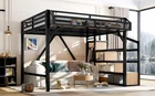 Queen Loft Bed with Storage Stairs, Shelves & Built-in Wardrobe, Metal Loft Bed Features 【Maximized Storage with Built-in Wardrobe & Shelves】This queen loft bed with storage is designed for organization and function. It includes a built-in wardrobe, open shelving, and storage stairs — perfect for storing clothes, books, toys, or essentials while saving space in your bedroom. 【Convenient USB Ports & LED Light Strip Included】More than just a bed — this metal loft bed features built-in USB ports and LED lighting, making it ideal for late-night reading, studying, or charging devices without leaving your bed. A great choice for teens, students, or dorm living. 【Safe Climb Design with Full-Length Guardrails】Stay secure with full-length guardrails on the top bunk and sturdy stairs that double as storage. This loft bed with stairs offers both safe access and added functionality, giving you peace of mind for older kids or young adults. 【Sturdy Metal Frame with Noise-Reducing Structure】Crafted with a heavy-duty metal frame, this queen loft bed is reinforced with premium hardware for durability and stability. Special noise-reducing connectors help minimize squeaking, offering a smoother, quieter sleeping experience. 【Easy Assembly with Complete Kit Included】This space-saving loft bed includes all necessary tools and a detailed illustrated manual for hassle-free setup. Whether you’re a DIY beginner or experienced, you can assemble it confidently and quickly without professional help. Descriptions Description Upgrade your bedroom with this all-in-one Queen Loft Bed with Storage and Built-in Features, designed to maximize space while offering convenience, safety, and style. Ideal for teens, students, or anyone in need of vertical storage, this space-saving loft bed turns your sleeping area into a multifunctional living solution. Built with a durable metal frame, this loft bed features a smart layout that includes storage stairs, open shelves, and a built-in wardrobe — perfect for organizing clothes, books, toys, and essentials without taking up extra room. It’s a complete storage solution built right into your bed. Designed for modern living, the bed comes equipped with USB charging ports and LED strip lighting, making it easy to charge your devices or read at night without needing extra furniture or cords. Convenience and style come together in one streamlined setup. Weight & Dimensions Product Type Metal Loft Bed Color Natural Wood Size Queen Material Metal+MDF Overall Product Dimension 96.85”L*62.9’W*63.39”H Overall Product Weight 164.24 LBS Weight Capacity 350LBS Recommend Mattress Thickness 6'' Number of Package 2 Package Dimension & Weight Please refer to the Specification Level of Assembly Full Assembly Needed Eligible for Hardware Packs Yes Country of Origin China Note All the pictures are taken by actual samples, slight chromatic aberration may occur due to lighting or display.