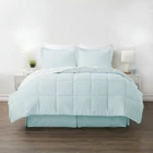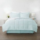 College dorm room approved! This complete comforter set includes everything needed for an easy update of any bedroom. The bed-in-a-bag includes 1 comforter, a white set of sheets, bed skirt, 2 shams, and 2 pillowcases. Each piece is made from microfiber/polyester that's resistant to stains, wrinkles, mold, odors, fading, bed bugs, and dust mites. Classic baffle-box construction of the blanket keeps the filling evenly distributed. Machine washable, moisture-wicking, and non-pilling. Machine Washable Microfiber/Polyester What's Included: Comforter, Sheet Set (white), Bed Skirt, 2 Pillowcases, 2 Pillow Shams Dimensions (Comforter): 88 L x 86 W (inches) Weight: 9 lbs.