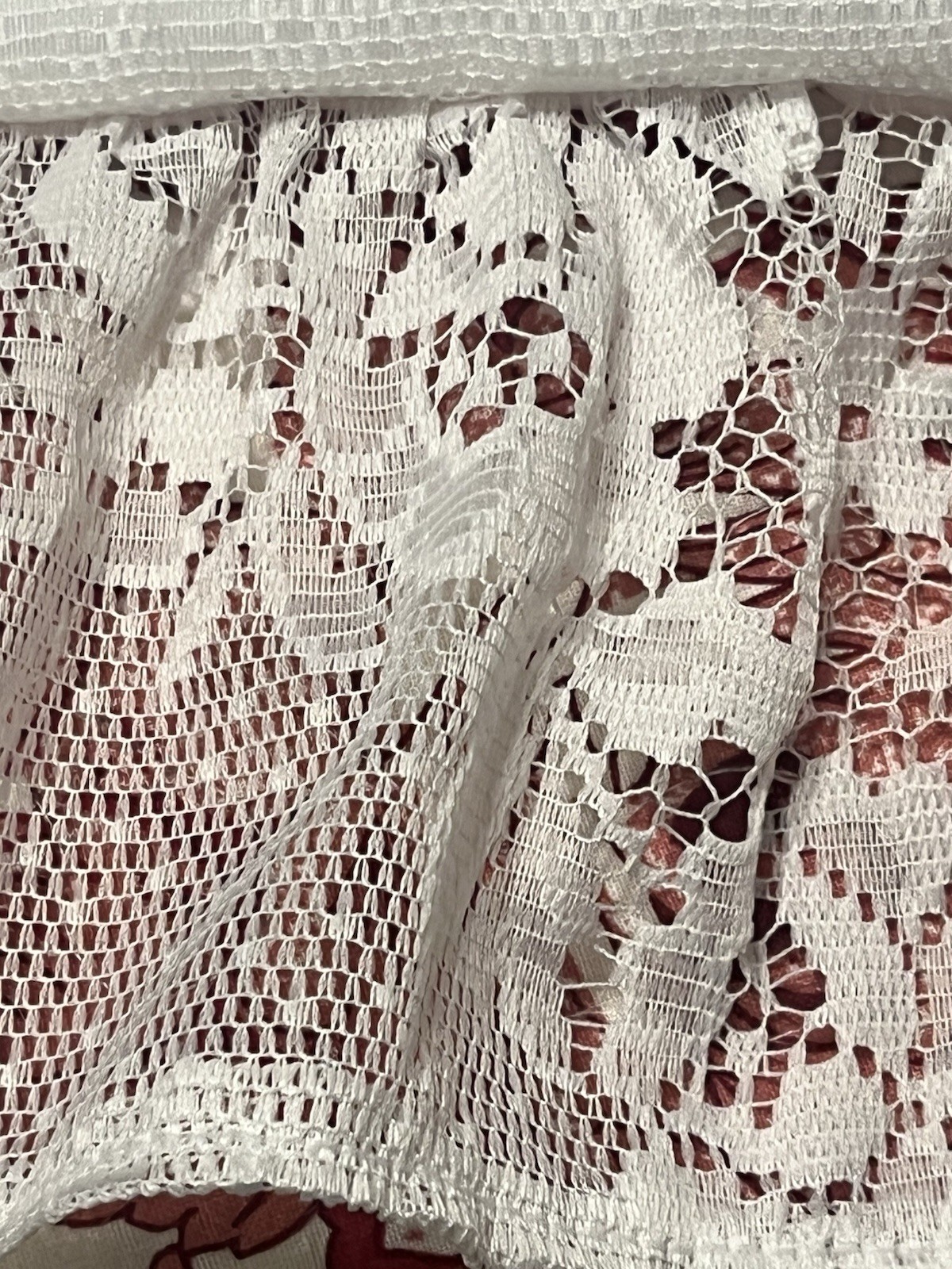Very very pretty as well as shabby Chicish! There are two standard size pillow cases. Both are the same. These are white not cream, ecru pure white. Beautiful floral pattern all over in lace with a lace ruffle that goes all the way around. The back is also white with the center open to place pillow in. I had another set not using hanging in closet. The one shown is mine and an example only to show the pretty details etc. Both are in like new condition and have not been used. JC Penny home collection. There is some padding on the top with the white background under the lace. Please look at all photos and blow them up also. Items sold as you see and pictures are part of the description. At this time I do not accept returns unknown selling future. Please ask any questions. Come from clean smoke free home. Thanks Usually ship same day or next it is now winter so put two days just in case. Thanks
