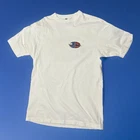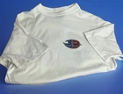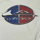 Quicksilver T Shirt Vintage 90s Silver Edition White Large Spellout Blue Red White Wave Logo on Back and Front Chest Logo Chest 42 Length 29 pinhole in front and on sleeve. Please review images.